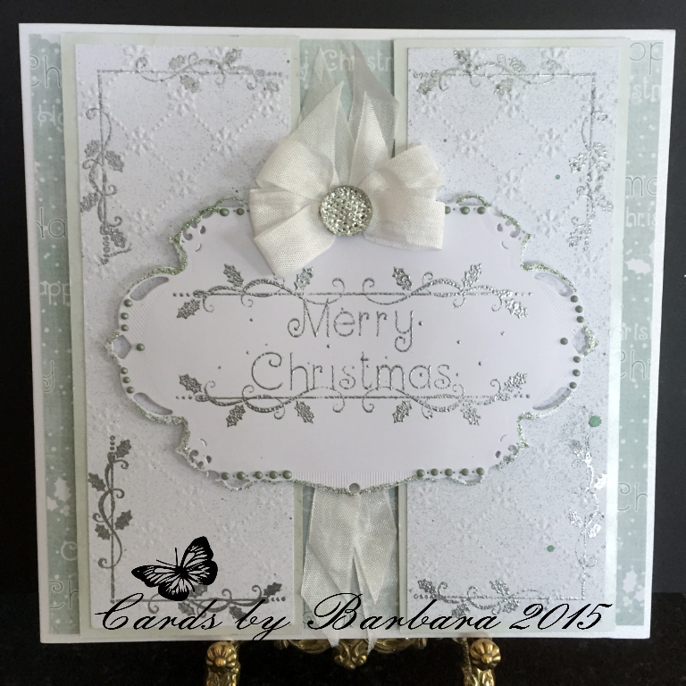 I cut out the bloom using plain white card and also left over chic floral paper, then used Chic Moss Mister Spray on the white ones, after shaping these I attached to the main card along with the Vinery.